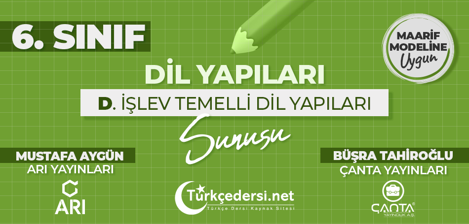 6. Sınıf Dil Yapıları – d. İşlev Temelli Dil Yapıları konusuyla ilgili sunumuz, aşağıdaki alt başlıklardan oluşmaktadır: