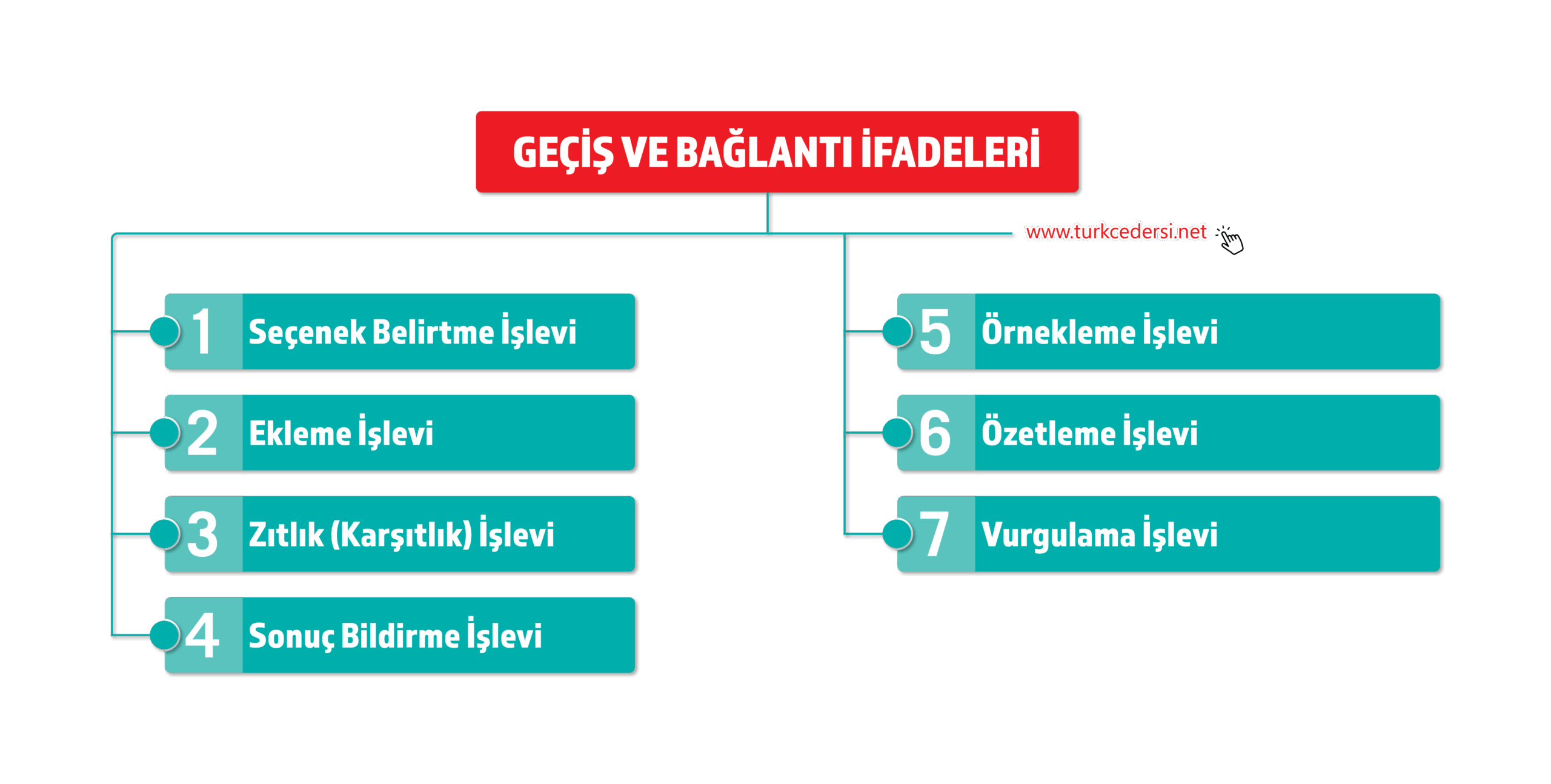 Başlıca geçiş ve bağlantı ifadeleri şunlardır: