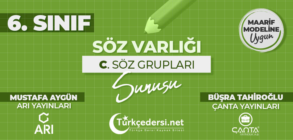 6. Sınıf Söz Varlığı – c. Söz Grupları konusuyla ilgili sunumuz, aşağıdaki alt başlıklardan oluşmaktadır:
