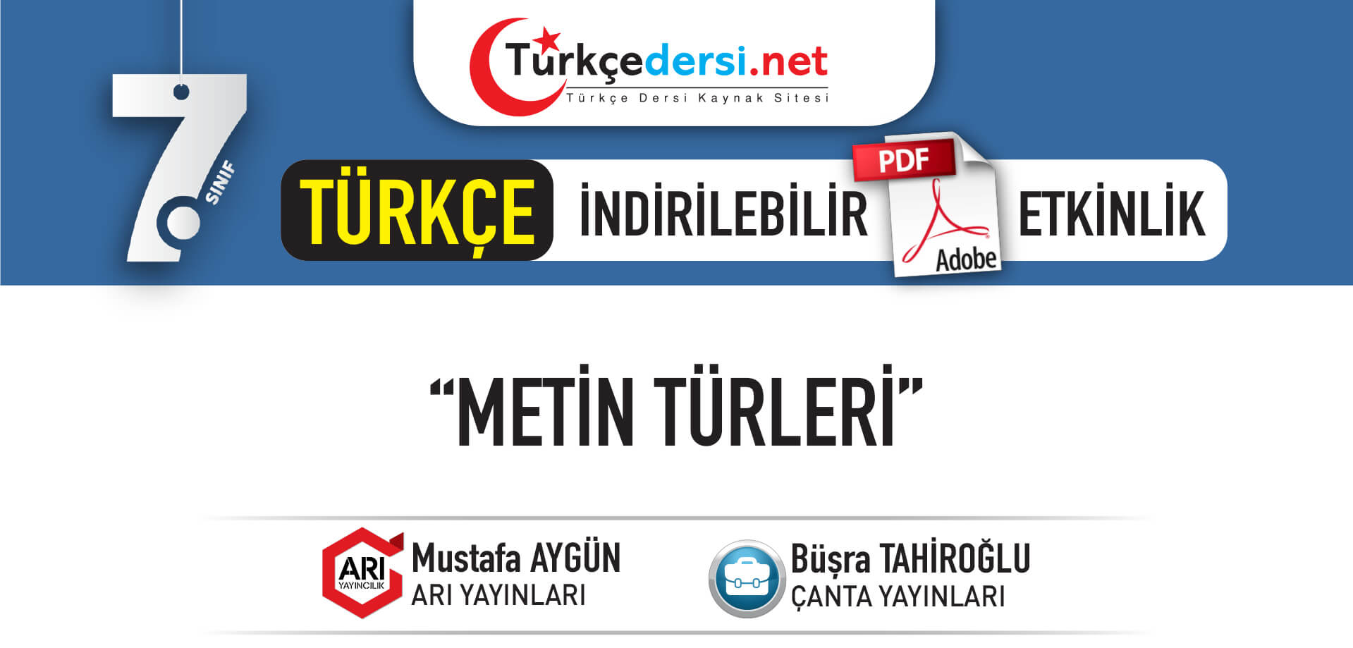 “7. sınıf metin türleri indirilebilir PDF etkinliklerimiz” aşağıdaki konulardan oluşmaktadır.