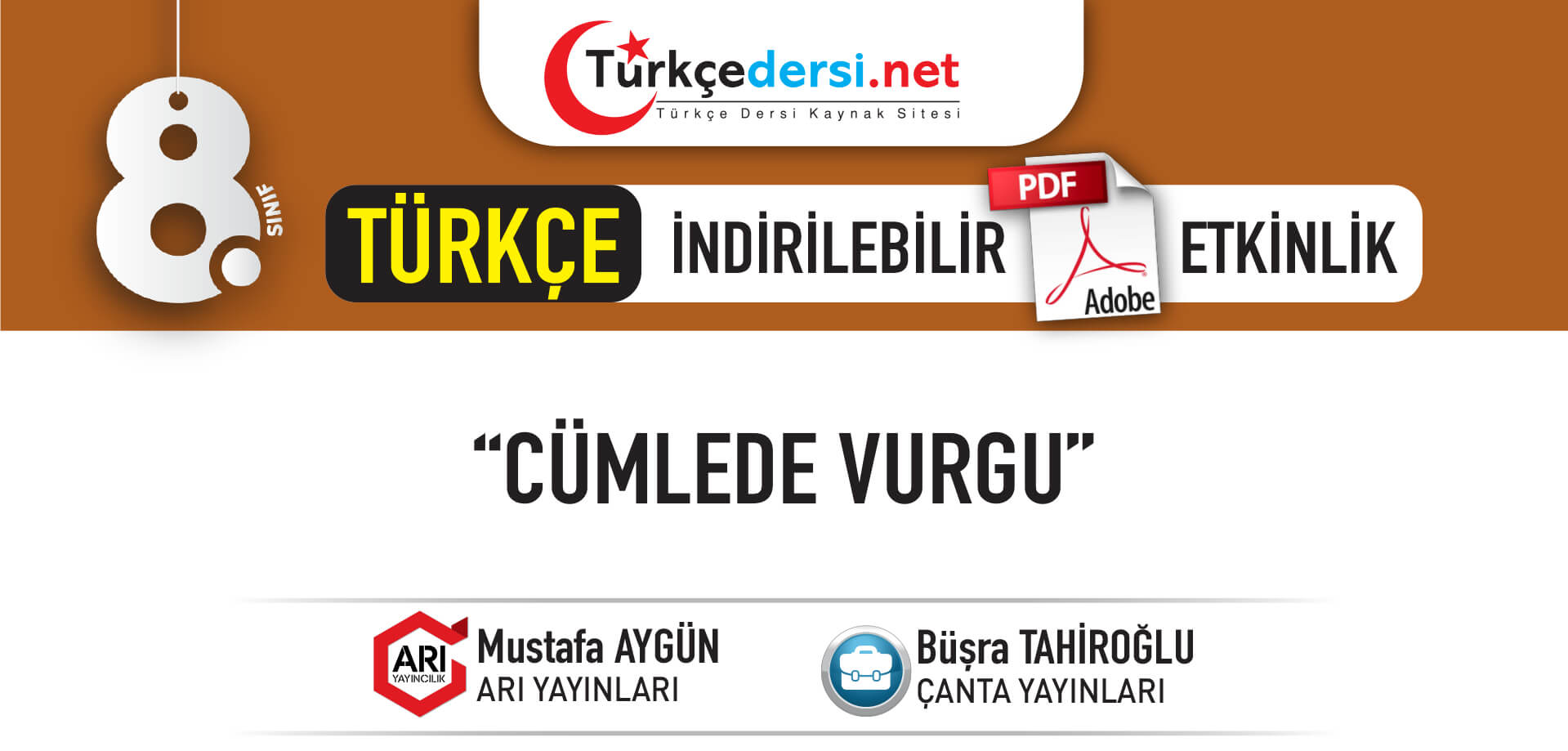 “8. sınıf cümlede vurgu indirilebilir PDF etkinliklerimiz” Mustafa Aygün ve Büşra Tahiroğlu koordinatörlüğünde hazırlanmıştır.