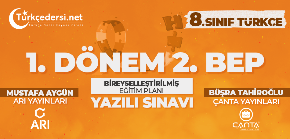 Türkçe Bireyselleştirilmiş Eğitim Programına (BEP’e) uygun olarak hazırlanmış 8. sınıf Türkçe 1. dönem 2. BEP yazılılarımıza aşağıdaki butonlardan ulaşabilirsiniz.