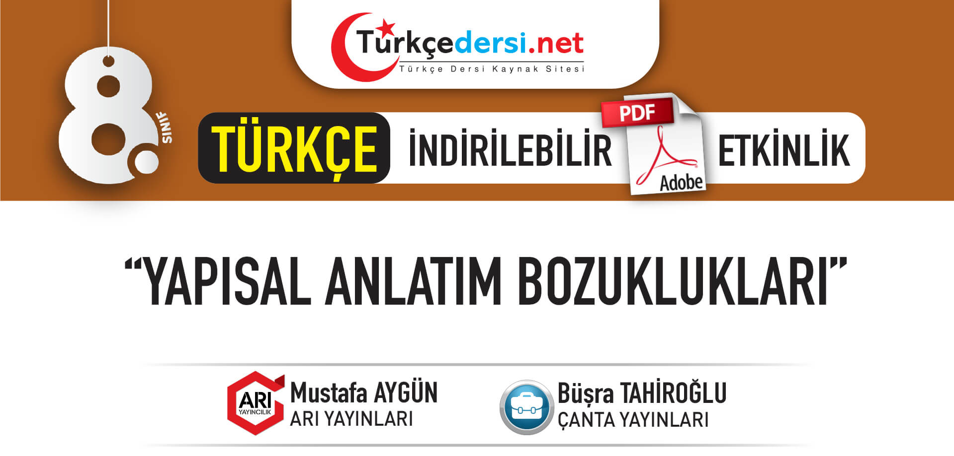 “8. sınıf yapısal anlatım bozuklukları indirilebilir PDF etkinliklerimiz” aşağıdaki konulardan oluşmaktadır.