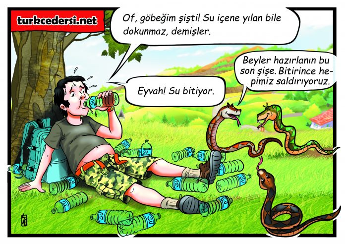 Atasözleri – “Su içene yılan bile dokunmaz.” Karikatürü